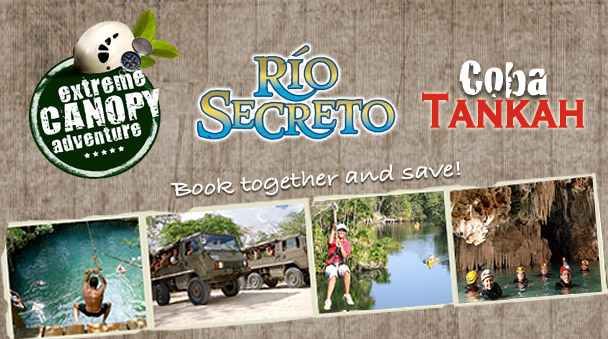 Choose two or three of the best adventure excursions and save! Ride exciting zip lines, get deep in a cave and swim in an unforgettable scenario, climb the tallest Mayan pyramid, swim in the cenote, ride a boat and more...